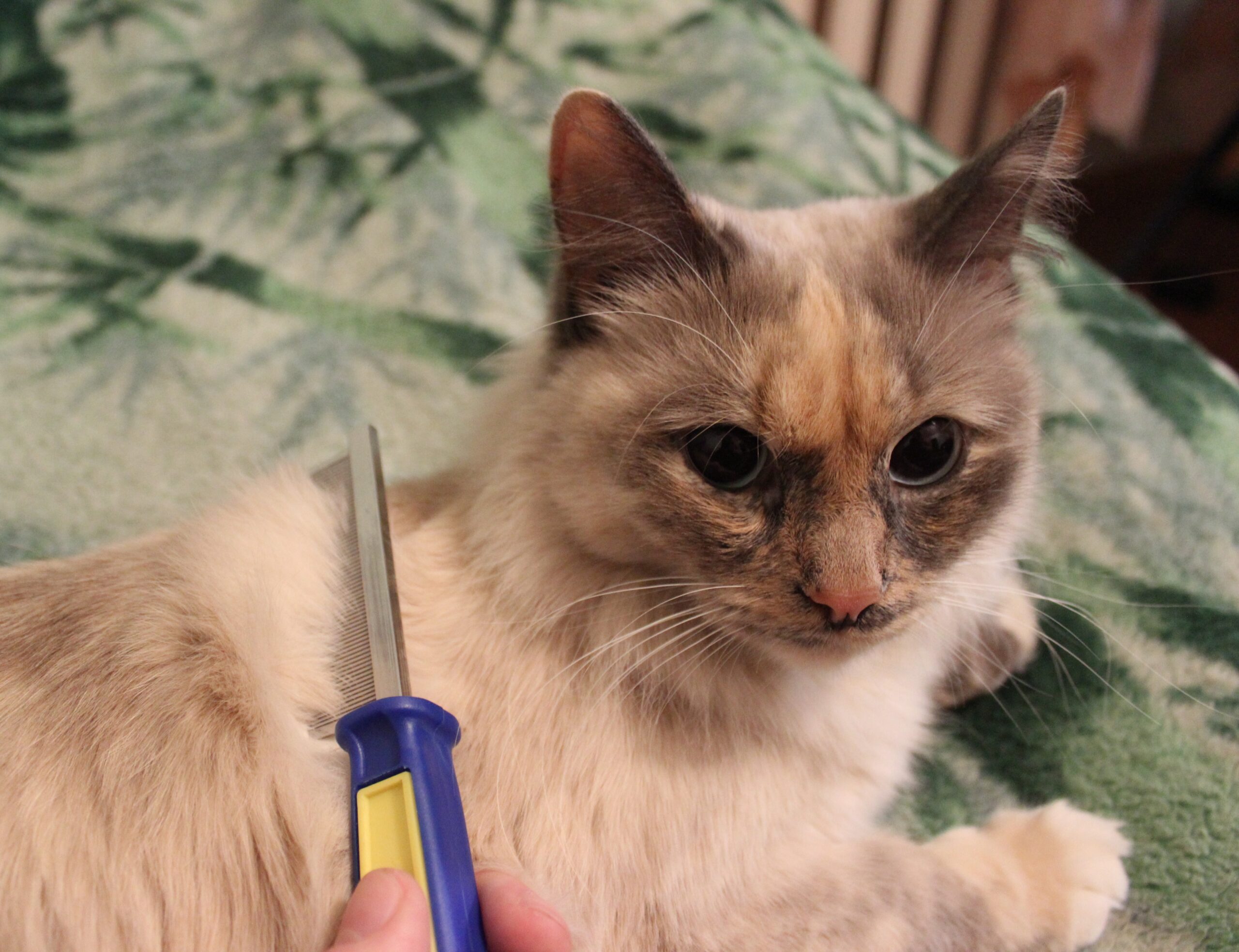 Voor langharige katten, zoals de Perzische kat, is vachtverzorging een intensievere taak. Ze moeten minstens 2 keer per week tot dagelijks worden geborsteld om klitten te voorkomen. Gebruik een flexibele borstel met metalen pinnen die de vorm van de huid volgt. Vervolg met een metalen kam met grove vertanding. Borstel extra zorgvuldig op gevoelige gebieden zoals de buik, tussen de benen en onder de staart. Bovendien is het aanbevolen om langharige katten 4 keer per jaar naar een trimsalon te brengen voor professionele verzorging.